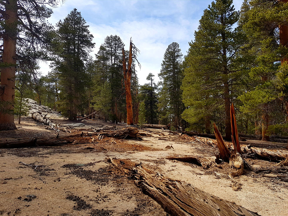 The coyotes were hauling again this morning (as last night) and I woke up with their sound. Last night we didn't catch up with Joanne and her siblings but should do so today. I was ready by 6.15 am and left. The water source is in about 4 miles and this is actually the place where I wanted to go yesterday and spend the afternoon as there is a little river. We did it this morning and I was tempted to stay there and enjoy the day. I knew that Poptart and his crew should arrive here today. But life is no cake so I moved on. In the next 6 miles we have to climb more than 800 meters and I'm really not looking forward to this at all! Hauser stayes with me and while we chat on also the uphill is much easier to manage. (Its still hard though :) ). On our way up we finally run across joanne and her siblings. They made it to the river last night and hence had to hike 4 miles less than we had to this morning. They will break for a little longer before moving on again. But because her siblings just started to hike yesterday they don't plan on hiking more than 15 miles. I remeber when we started the trail, 15 miles was a biiig day then and we were k.o. in the evenings! However, now I would like to move on more than 15 miles a day. Hence, I moved on together with Hauser. Jason is ahead of us somewhere. We agreed to meet us all in Lone Pine where me, Hauser and Jason should arrive tomorrow (if we are lucky enough to find a hitch) and Joanne and her siblings during the next day. It's nice out here in the forest, even if it is a long uphill. There is water every 1-2 miles and it feels strange to not fill up all bottles completely with water as the next source is sooo long away! But hey of course I looove it. I only fill up my 0.7 liter water bottle and that's more than enough to bring me to the next water source. The last mile of the uphill is the nicest one. We can see some snowcovered mountains in the distance and hike along a forest with beautiful old and sometimes burned trees. I took picture over picture and lost the guys. But I told them shortly before that I am really hungry and will eat lunch on the top of the mountain. When I finally reach the top no one is there. I am so hungry I don't care and prepare my food. A bagel with la vache qui rie cheese (thanks Heike!) and summer sausage. Not too shabby. It's a bummer to get food out of your backpack now because it's all stored in the bear canister. To get the bear canister out of my backpack I nearly have to unpack it completely! It's annoying and it's only my second day! I anyway wonder how I shall fit all my food in there once we hike on for a couple of days! But I guess I shall find out.... soon later I move on as it's getting cold. Now at least it's all downhill for 4 miles. I meet the guys on my downhill hike sitting on an old fallen tree in the sun and join them. They hike is beautiful even so there are some scary dark clouds appearing in the sky. We walk on and it's really scenic. Cause I'm taking loads of pictures and loose the guys again. But I just can't do differently. It's all beautiful out here and I wished I could take better pictures to show how beautiful it really looks. The trees are amazing. Some of them are all twisted around, others have 3 trees or more out of one branch and so one. I simply love it here. Finally, I feel like back in the desert as we reach the last water source for 11 or 12 miles. And there is an uphill climb ahead of us again. That means we dry camp and have to bring enough water for the hike today, cooking dinner, and the hike tomorrow to the next water source. It sucks carrying again that many liters of water as next to the bear canister this adds on a lot of weight to your backpack. But there is no way around it so swallow it and hike! It's steep but the scenery is still amazing and it's about 3.5 miles to go to our camp spot. On the way up I run into Jason. Just in the right time. A jet is flying by, at very low altitude, looks like it's crashing into a tree in front of us, making a hell lot of noise. My heart nearly stopped beating as I was so surprised and it was so loud! I have heard already in Lake Isabella that some jets from the army use this area for training purposes as the landscape must be similar to the one in Afghanistan. We have heard the noise of the jets since many days but never spotted one. They are so fast that you can only hear the noise once they past. Today we spotted them twice as they were flying quite low. It's really cool to see them but I do wonder what effect that has to the wilderness here as they are really damn loud and especially if they fly that low. The last mile (this is kind of normal) is soo hard and I have to use s lot of mental will power to not throw my poles away and pitch the tent right here ;). We have hiked nearly 22 miles today, which is a big day already but did gain a lot in evaluation too. I sit in my tent which I pitched at 3'188 meters. Its windy and quite cold (my watch tells me it's 9 degrees but it feels much colder) plus there still are some small pieces of snow out here. Jason, who stayed where we have seen the jet has not turned up yet. He told me that he stays a little longer there and hopes to see another jet. It's 20:20pm now so I guess he will sleep somewhere else tonight unless he arrives in the dark. Tomorrow our goal is to reach Lone Pine. Let's see!