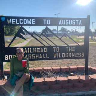 We hike out just as 'Dragon', a hiker we met last night, was passing. Together we hiked on for little while. The sky was blue and it looks like it's gonna be a great and warm day of hiking today. No snow or rain forecasted for today. Also, it is a easy day of hiking today, what a nice change from the past couple of days! Only one moderate climb and the rest is mostly flat or downhill. We stop for lunch at a river crossings after more than 15 miles of hiking and use the sun to dry out our gear. Taking out the tent, we found a snowball the size of two hands inside the tent from the condensation! Also, the CDT is closed here due to wildfires as of here. We have to take an alternate route, which however is in our favour. The trail is 4 miles shorter, bypasses a steep climb and leads along a beautiful river valley. Hiking along the trail we encounter big animal footprints. They are nearly the size of my hand. It could have been a wolf, but it rather looks like the footprints of a very big mountain lion. He must have passed this trail not that much ahead of us. We run down the trail and by 4.30pm we reach the dirt road at Benchmark which leads down to Augusta. Reaching the road, a forest Service car drives by, followed by another car, loaded with hikers. This is Frank, a local guy who offers shuttles from and to the trailhead. In the car there is Katka and Petr, Fuego, Masterchef and Gmac. Frank tells us to quickly hop in and drives the group up the trailhead. He is worried about the forest service, we don't quite understand why but apparently they don't like it that he offers shuttles and is being paid by us for doing so. He charges 20 USD per person and rid. This is quite a lot, but it is also a long drive on a dirt road into town, so I guess the price is fair. Frank wants us to drive with him obviously, but he has to wait for another group to be picked up in about 1 to 2 hrs. We don't really wanna wait that long here, there is nothing to do. We rather wanna get as soon as possible to town, do laundry, get food, shower, etc. Frank keeps us in his car for about 45 minutes before we can 'escape' and just as he was OK with letting us try to hitch another car pulls over with hikers. We can just swap the car and get a hitch in town. Turns out our driver is the son of the only Hotel in town. Augusta is a very small town with a population of about 350 people. It has one Motel and 4 bars/restaurants. We get a room and ask for our boxes to be picked up. We called the Post Office on Friday from trail and asked them to hand out our boxes to the Motel, as we will arrive too late to town to pick them up on Saturday. The Post Office closes at noon on Saturdays and is closed on Sundays. Then we also called the Motel and informed them about the boxes (6 in total, 1 food box, my 2 bounce boxes, 1 parcel with my new fanny pack, 1 box with new socks for Soccermum and another box with warmer clothes for him). They confirmed to pick up the boxes, but then when we got there, no boxes are here! They didn't pick them up, even though they were there since Tuesday and they officially allow hikers to send boxes here. This is very annoying. The owners of the Hotel are at a wedding today and hence we hope to get the boxes latest tomorrow morning.