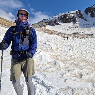 I got up, drying out my damp sleeping back (which was covered this morning with ice and snow!), just holding it up into the sun. There is no dry spot on the ground. Also I took out my shoes, insoles and socks to dry them out. I cleaned all the snow from my tent and the ice from condensation inside the tent and got more water. We decided to wait for our group (PlusOne, Dogbite, the K2's and Longstride), even if that takes all day. If they don't show up by tonight, we will hike out the next morning. By ten am we got up, hiked to the trail (our tent was a little off trail, at the other side of the lake) to leave a big message next to the trail made out of woodsticks saying 'Freeze waiting' and then big arrows leading the way to our tentside. Half an hour later our friends turned up! What a big relief! We didn't expect them that early. Glad we made the signs jus in time! We were so worried if they found a suitable camp spot save from wind and snow and how far back they camped. But only the K2's and Longstride turned up. Where is PlusOne and Dogbite? PlusOne wasn't feeling well since hitting higher altitude. We all can feel the high altitude a little and I didn't worry too much. But apparently it became much worse after yesterday, PlusOne is worried it might be even Covid, and so Dogbite and PlusOne decided to bail out at one of the trail heads, leading to a road in about 14+ miles. We hope they made it safe to the road and have reached, or are about to reach, a town in a day.