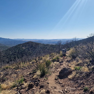 Not a mile in the next water source appears. But it's not a nice one and I only take 1 liter. 3 miles later there is a little stream flowing with cold water, where I fill up my bottles. I am not missing the cattle troughs yet! We keep leap frogging (see each other on trail every now and then again) with Kate and Peter all day long. Now starts a big uphill climb out of this beautiful valley. It's steep and hot and I am totally happy when we finally reached the top after more than 2 hrs hiking. We are over 2'500 meters above sea level. And that's the desert! We keep on hiking till it's dark and set camp on lava ground next to Kate and Pete😁 Lava ground is not my favorite at all, there is no chance to stay clean for a second! Nor is the desert, you are always dirty, I'm already looking forward to the mountains and gray ground instead of sand or dirt.